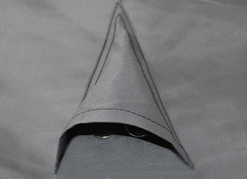 - Zwei Zuglöcher (Air Vents) mit drei Edelstahlösen verhindern das Wegfliegen bei starkem Wind